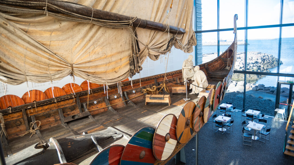Je visite Viking World, plutôt axé sur la découverte des Amériques. Une réplique du bateau ayant fait le trajet a été fabriqué selon les anciennes techniques, et a refait le voyage. Il est maintenant suspendu dans le musée.