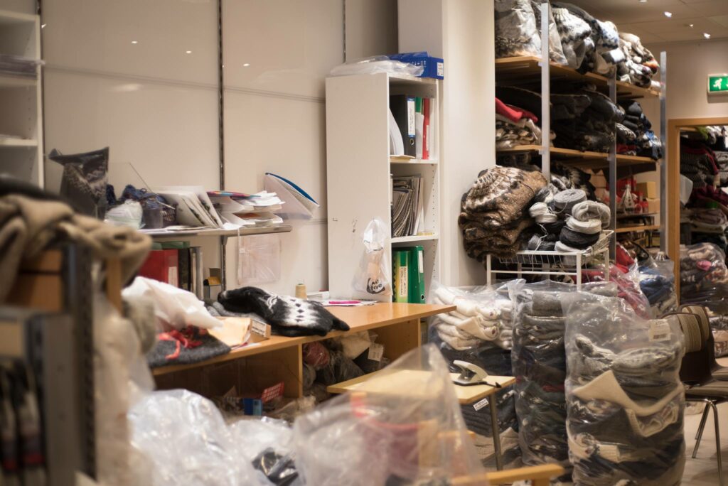 Ces pulls se vendent habituellement directement par les tricoteuses de l’association nationale de tricot qui a plusieurs boutiques en ville. Des tonnes de pulls, de pelotes et mitaines, avec les dames qui travaillent au fond du magasin !