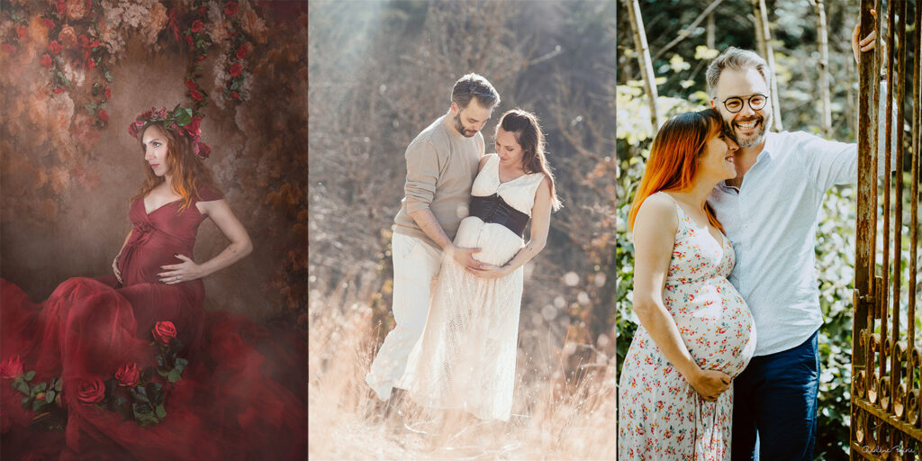 - Une séance photo grossesse puis naissance (ci dessus, par Chloé Chateauneuf, Yulika Sève, et Charlène Boirie)
